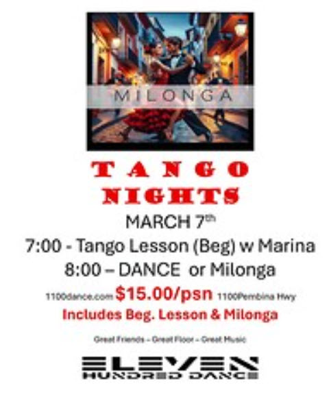 - 8 pm Milonga dance party